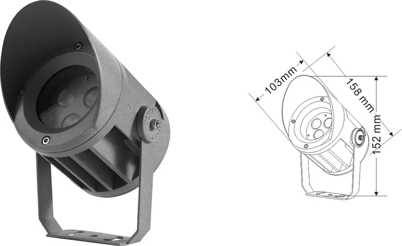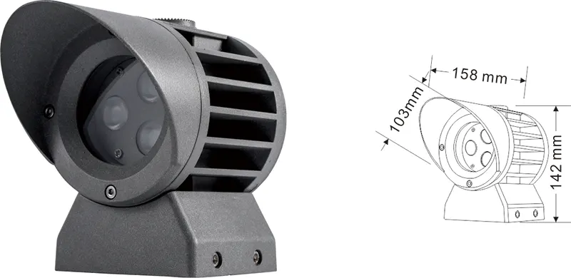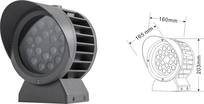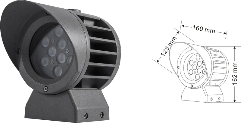| Luce di proiezione della facciata a LED | Con-TGD02-1 | Φ103*89*H152mm | 3-10W | Materiale: alluminio+vetro temperato Tipo di staffa: regolabile IP: IP67 Temperatura del colore opzionale: 3000K/4000K/6500K RGB / DMX512 RGBW / DMX512 Grigio convenzionale, personalizzabile per abbinare il colore della facciata dell'edificio |